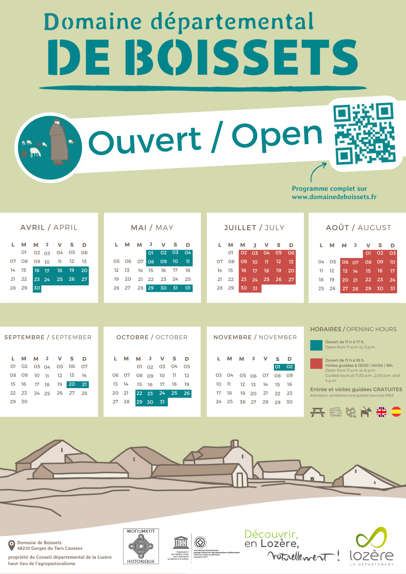Pour les établissements scolaires, centres de loisirs ou structures sociales, nous proposons des visites commentées sur réservation. Contactez-nous par mail à l'adresse boissets@lozere.fr ou par téléphone au 07.88.19.72.26 pour organiser votre visite. Attention, les réservations se font au plus tard 2 semaines avant la date souhaitée.