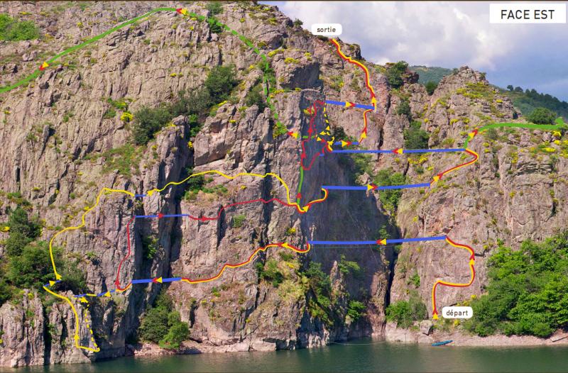 Un parcours commun emprunte une longue passerelle pour se terminer rive gauche du canyon. Là, une échappatoire rejoint le sentier aller. Le canyon peut être traversé à nouveau par un pont népalais pour rejoindre la rive droite. Plusieurs options sont alors possibles : continuer sur le parcours difficile ou facile afin de se trouver au début d’une tyrolienne de 70 mètres qui reste facultative. De là, soit prendre une échappatoire, soit un pont de singe, soit la tyrolienne.