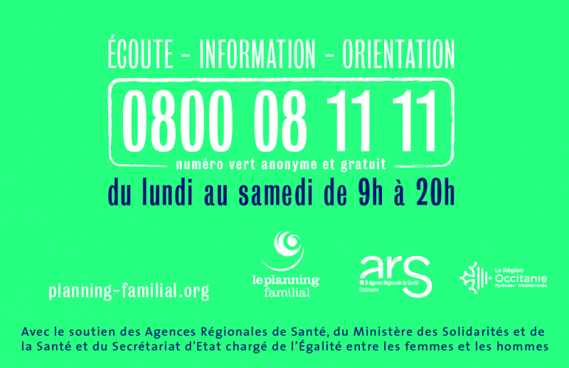 Le Planning Familial est d'ailleurs implanté sur votre département dans la commune de Mende. Il assure une permanence téléphonique permettant à toute personne en besoin d'informations liées aux thématiques de la santé sexuelle (IVG, contraceptions, vie sexuelle et affective, violences, etc), d'obtenir des réponses à leurs questionnements.