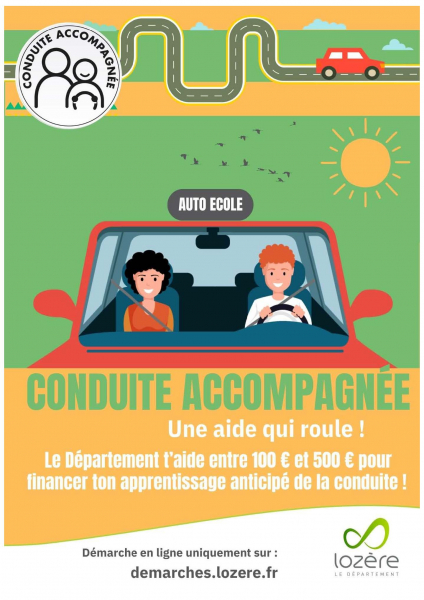 C’est pourquoi, depuis 2003, le Département de la Lozère encourage la pratique de la conduite accompagnée dès 15 ans en accordant, à chaque jeune qui en fera la demande (sous réserve que les conditions soient remplies), une aide financière de 100 à 500 euros, selon le Quotient familial, destinée à financer une partie du coût de cette formation.