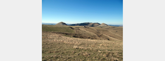 Un belvédère sur les Puechs des Bondons permettant une interprétation du paysage à travers la vue à 360° et une valorisation géologique du lieu via une entrée scientifique et une entrée légendaire.